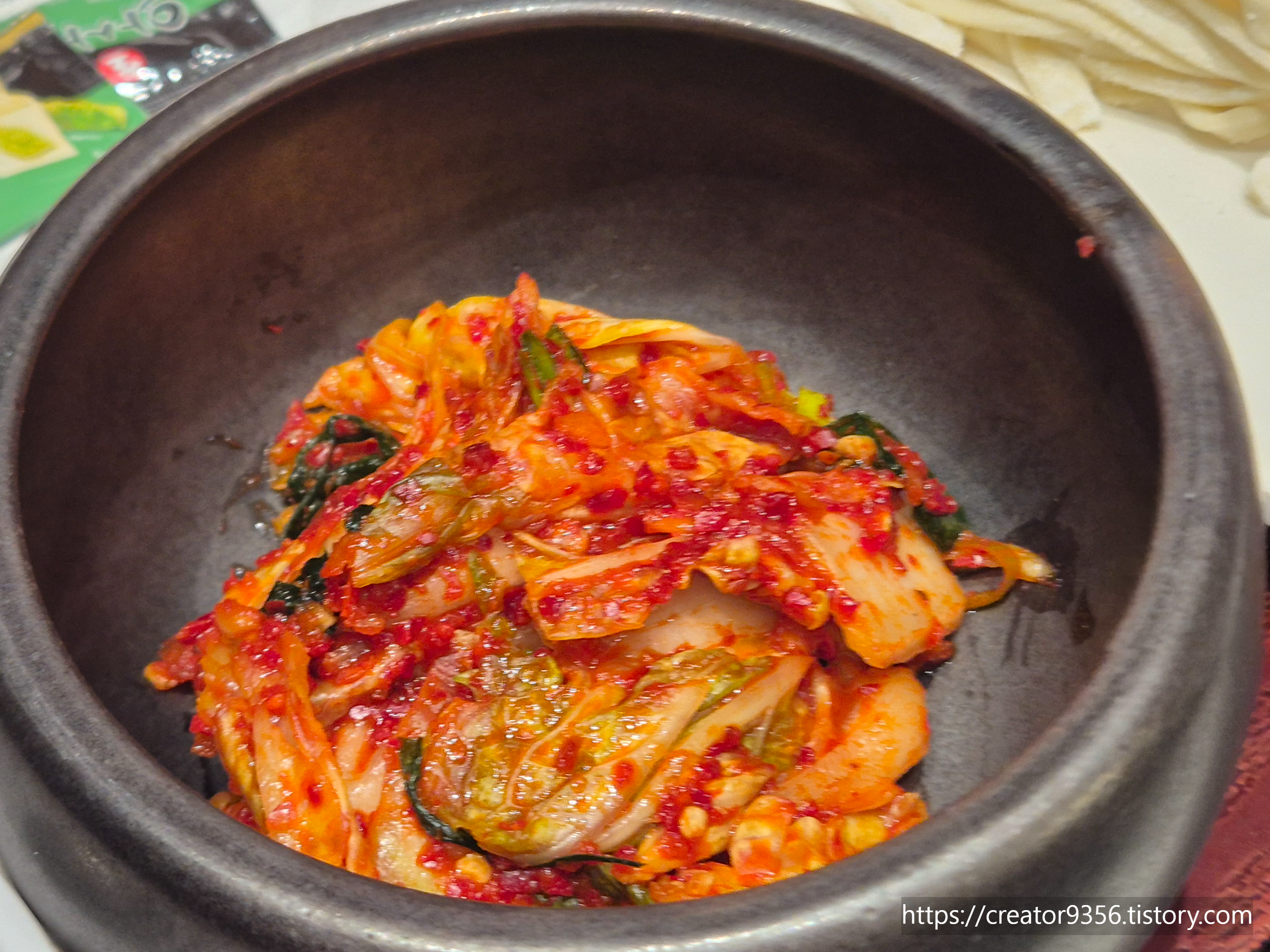 여기에 겉절이 김치를 같이 먹으니 칼국수와 잘 어울렸어요.