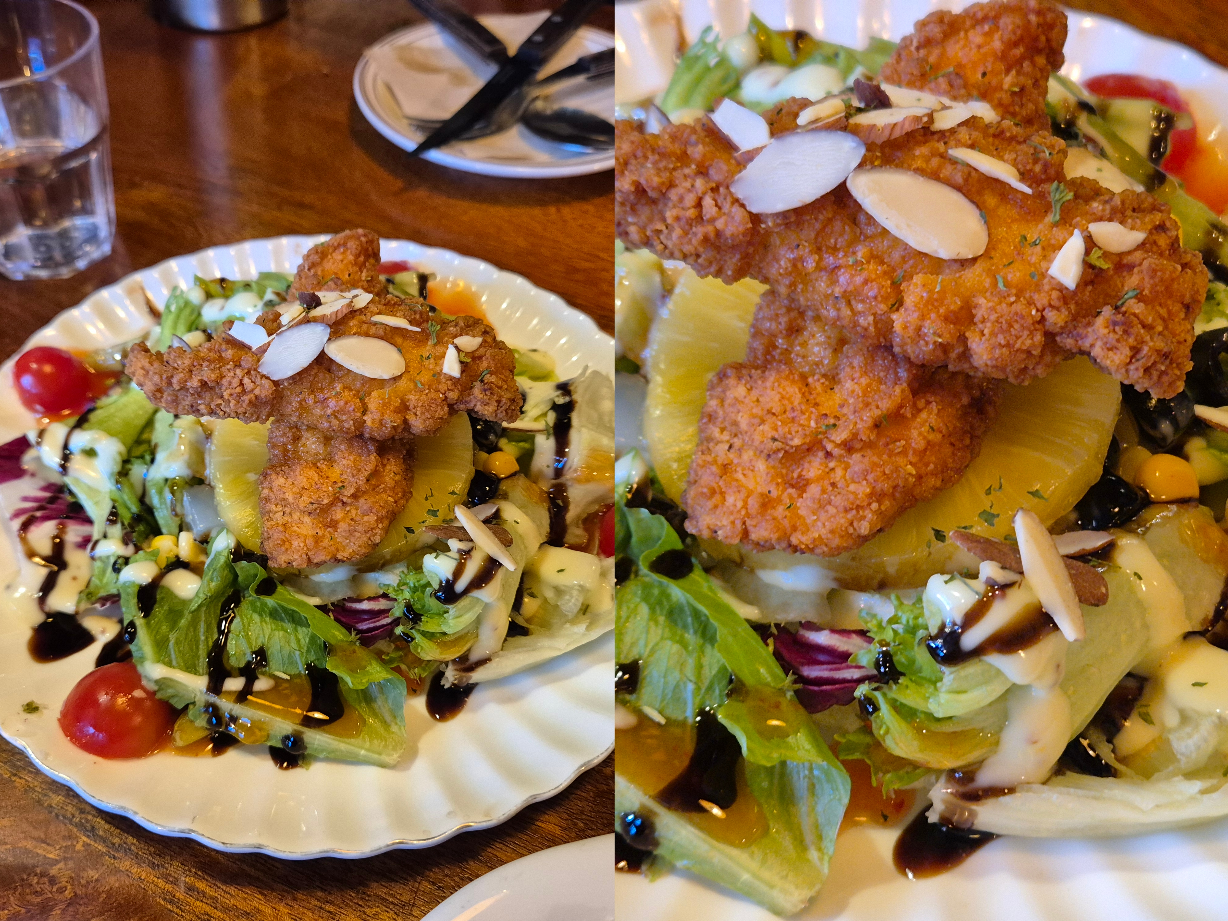 바삭하게 튀긴 치킨 텐더가 올라가 있어서