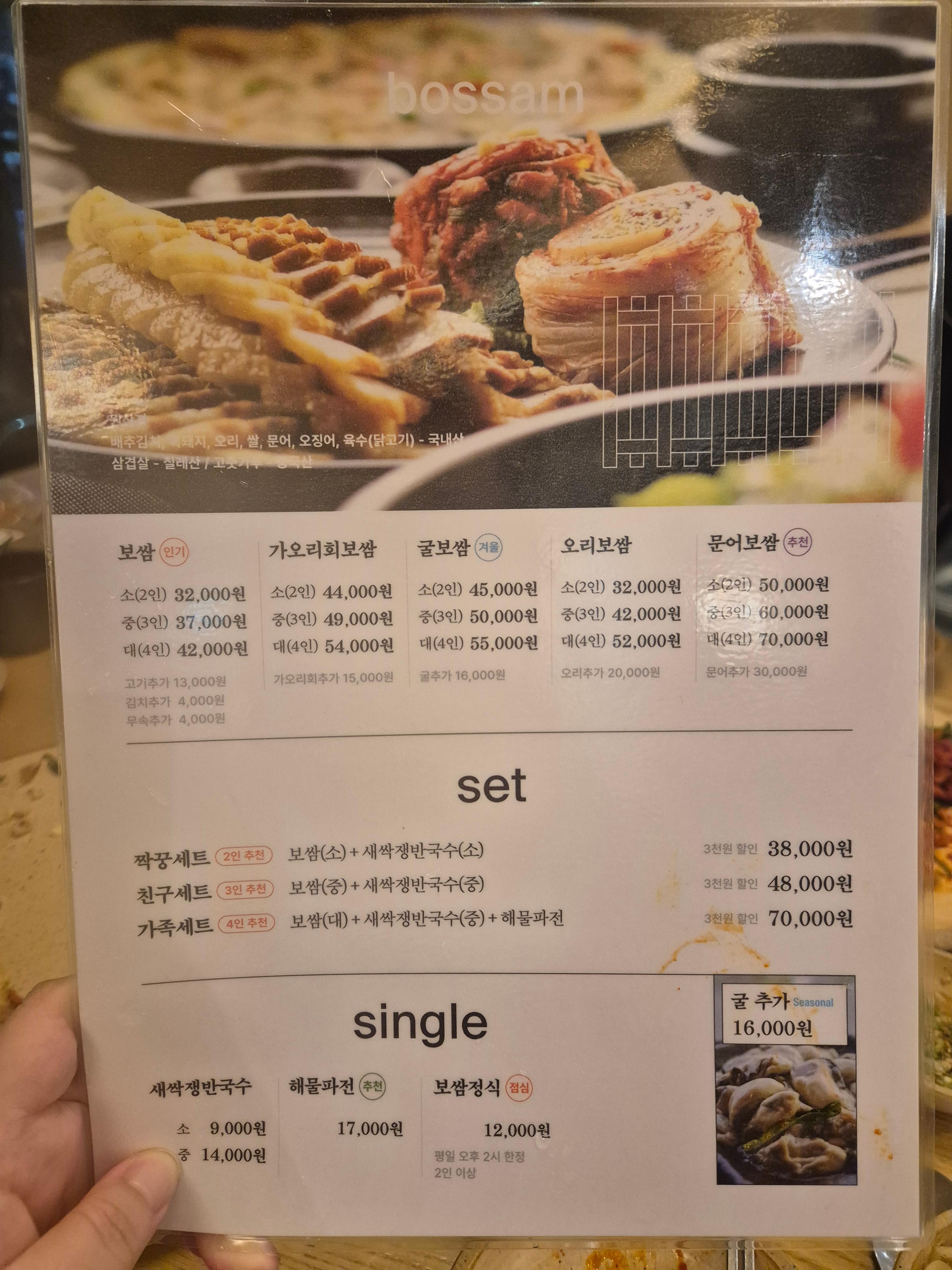 정담은 보쌈의 대표 메뉴는 당연히 보쌈! 가격은 아래와 같아요: