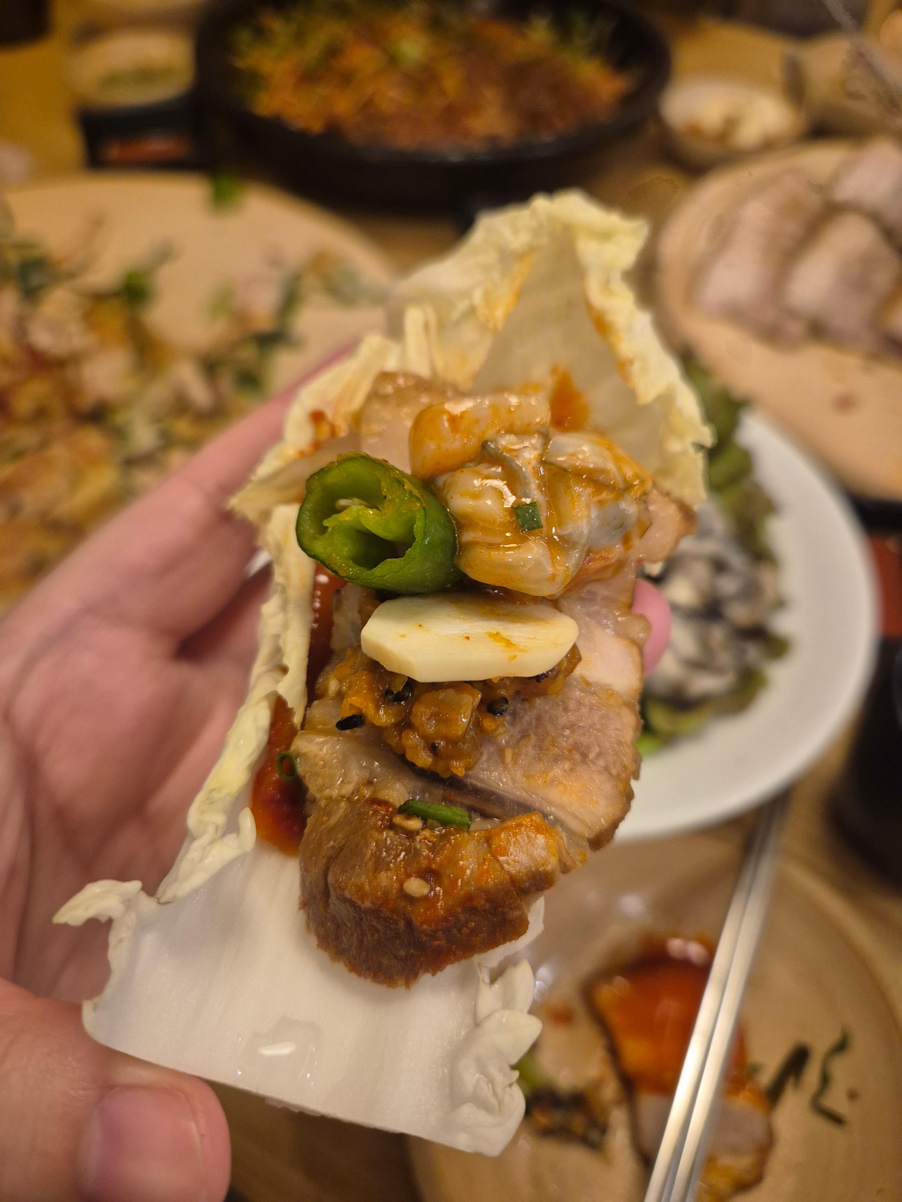 알배추에 생굴까지 얹어 굴보쌈으로 먹으니 보쌈의 느끼한 맛도 잡아주면서